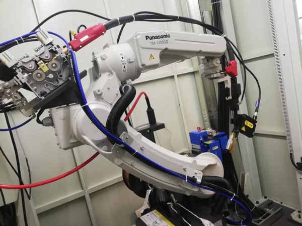 视频所展现出来的产品功能特点:松下机器人配合传感器进行环缝焊接,解决焊缝跑偏,节省人力物力。