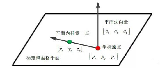 标定棋盘格平面内任意一点与法向量关系: