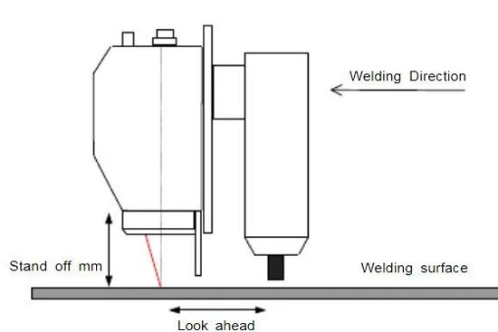 传感器通常以预先设定的距离(超前)安装在焊枪前部,因此它可以观察焊缝。传感器本体到工件的距离也就是安装高度取决于所安装的传感器型号。当焊枪在焊缝上方正确的定位后,焊缝应该接近条纹的中心,这才能使得摄像机观察到激光条纹和焊缝。