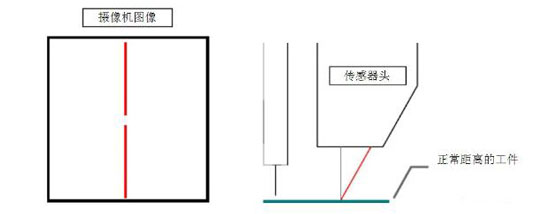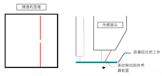 由于激光条纹是以一定的角度投影的,如果工件同传感器距离太近,激光条纹的位置就相对靠前。反过来,如果工件同传感器距离远一些,工件表面激光条纹的位置相对靠后。摄像机观察激光条纹的位置,传感器能够测量距离工件的垂直距离。从条纹的形状上看,传感器也能够测量表面的轮廓和焊缝在条纹上的位置,这就允许传感器测量焊缝的横向位置。