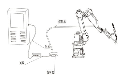 创想智控自主研发的机器人焊缝跟踪系统配合焊接机器人使用,可以正确引导机器人进行焊接定位。