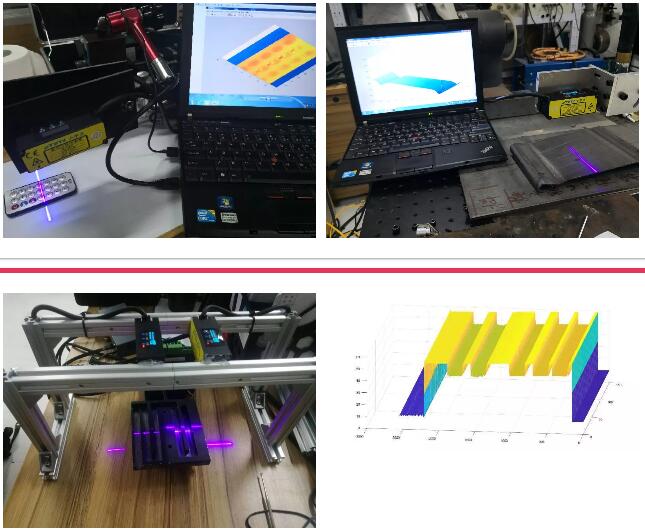 采用柱面物镜将激光光束扩大为条状,激光在目标物上产生漫射,反射光在CMOS上成像,通过检查位置、形状的变化来测量位移和形状。